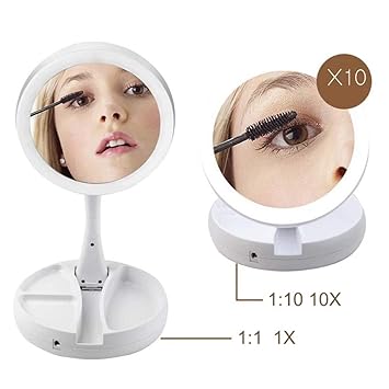 Led lighted tri panel makeup mirror. Danielle two sided makeup mirror 12x magnification soft touch midnight matte see more like this. Skip to main content. 8 round wall mounted 2 side cosmetic make up bathroom mirror 10x magnification.