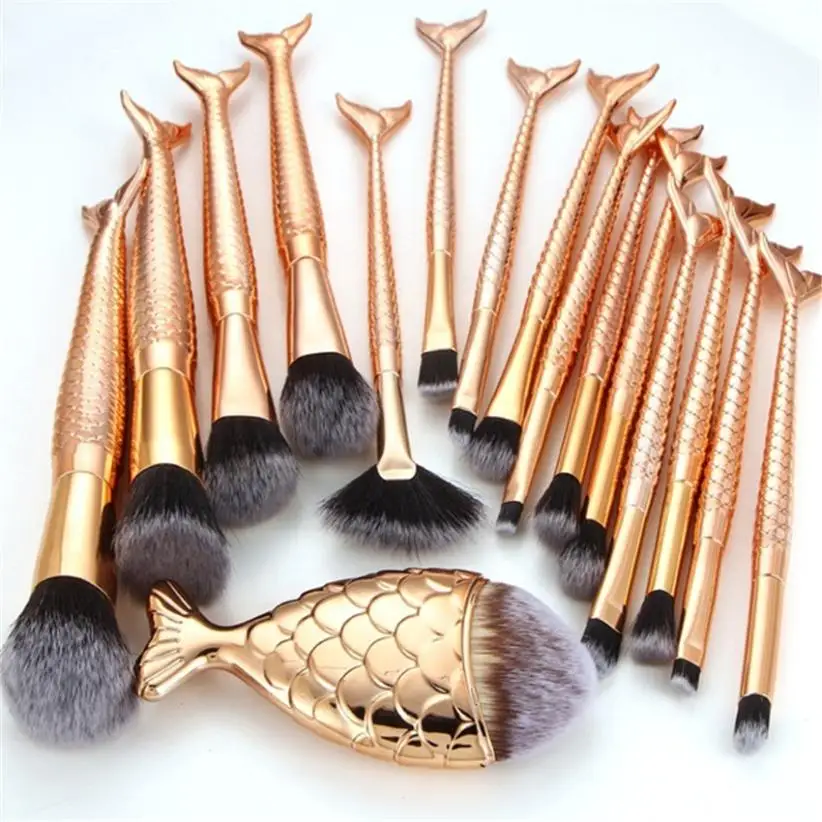 16 Piece Golden Mermaid Make Up Brush Set Makeup Station Store