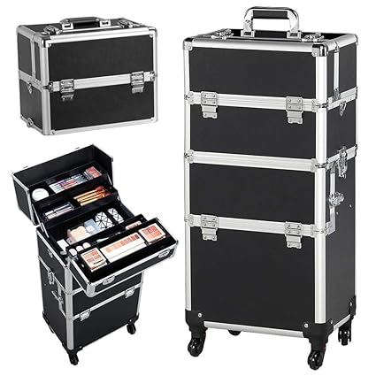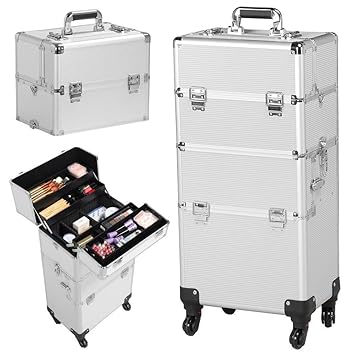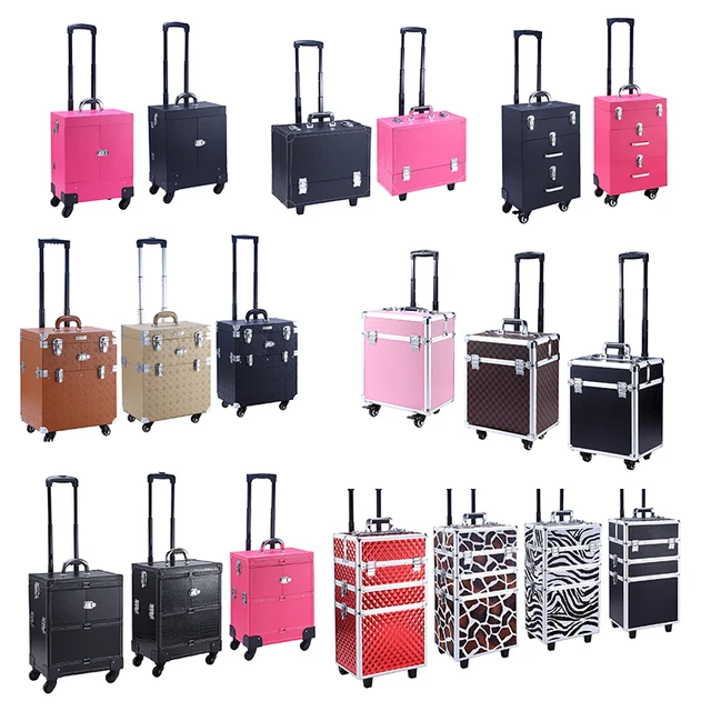 Our make up case finishes and edges are thoroughly completed and solid without making the case too heavy to manage. Product 3 in 1 stylish aluminum rolling makeup case professional makeup train case trolley cosmetic organizer travel beauty case with 4 detachable universal wheels and lift handle. 4the second part is a large storage with a independent tray. Product type product type rolling makeup case.