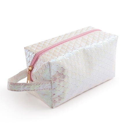 Cosmetic Bag By Zodaca Women Hanging Cosmetic Makeup Organizer Travel Bag Toiletry Make Up Pencil Case Zip Pouch Pearl Shiny Mermaid