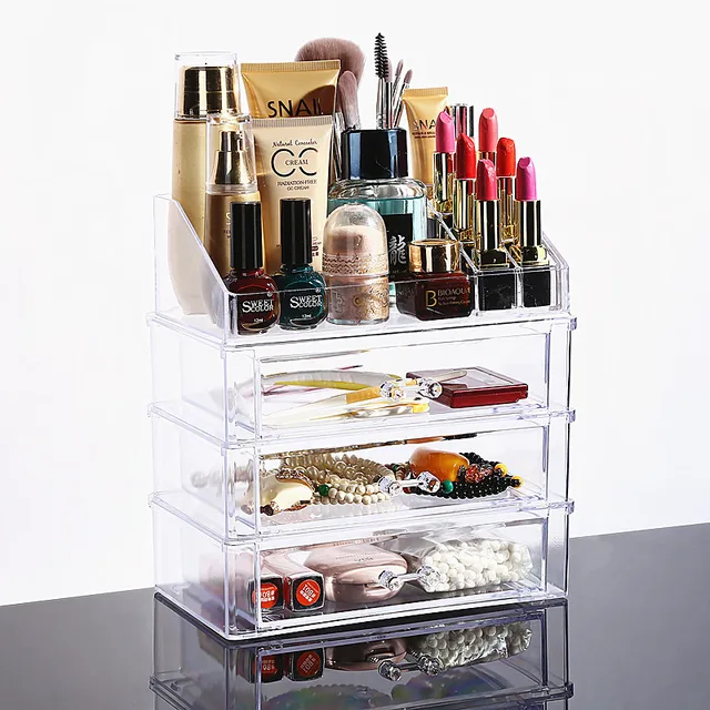 Cq acrylic 4 drawers and 16 grid makeup organizer with cosmetic storage cases the top of the almighty as a display make up brush and lipstick holderclear 2 piece set 44 out of 5 stars 187 1399 13. Premium acrylic makeup organizers. An acrylic makeup organizer helps you keep all your beauty products in one place. Multi check 4 drawers integrated acrylic makeup case cosmetics organizer transparent cosmetic table organizer makeup holder case box jewelry storage.