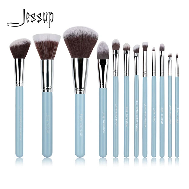 Jessup Brand 12pcs Blue Silver Professional Makeup Brushes Set