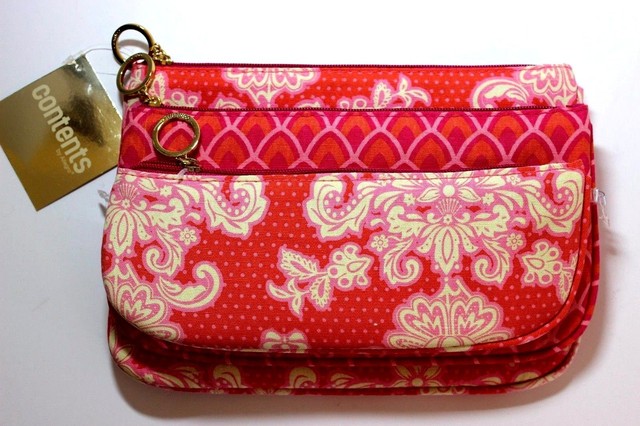 Contents By Allegro 3 Pc Makeup Cosmetic Bag Set Orange Pink Print