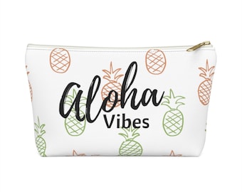 Aloha Pineapple Cosmetic Makeup Bag Zipper Pouch Pineapple Tropical Print Zip Up Pen Pencil Pouch School Supplies Holder Purse Hawaii Art
