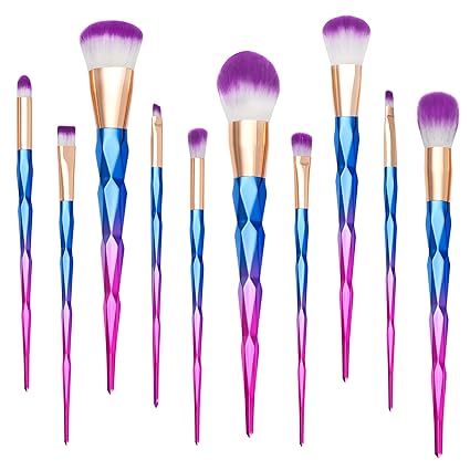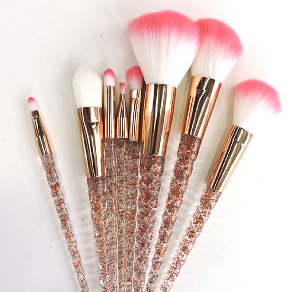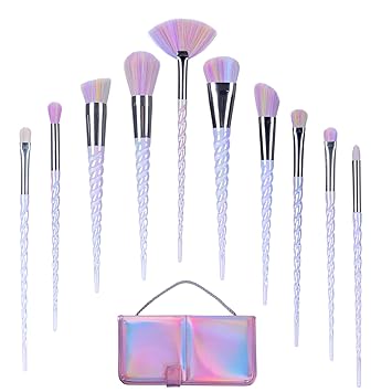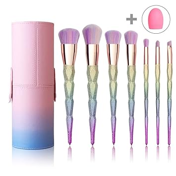 Amazons choice for unicorn makeup brushes qivange unicorn makeup brushes foundation eyeshadow powder concealer contour fan brush unicorn designed rainbow hair 10pcs blue 48 out of 5 stars 7. Makeup brushes nevsetpo make up brush 7 piece ins style unicorn series shiny crystal makeup brush set for kabuki foundation blending concealer eye face liquid powder cream with cosmetics bag. Makeup brushesnanja 7 pieces modern crystal unicorn handle make up brushes premium synthetic kabuki foundation face powder blush eyeshadow brushes unicorn makeup brushes set with travel bag pink 35 out of 5 stars 4. 99 187count get it as soon as wed jul 24.