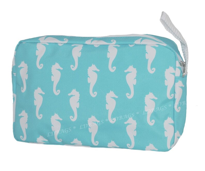 Monogrammed Aqua Seahorse Cosmetic Bag Aqua Makeup Bag Etsy