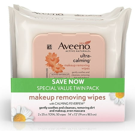 Aveeno Ultra Calming Makeup Removing Wipes 25 Count 4 Pack