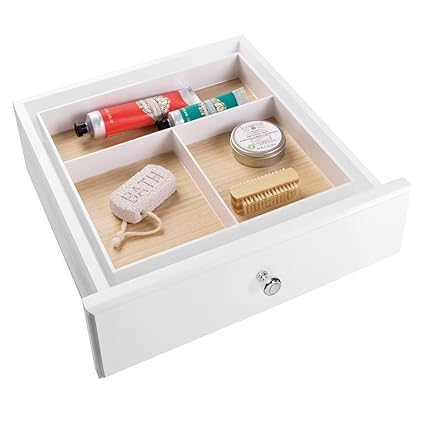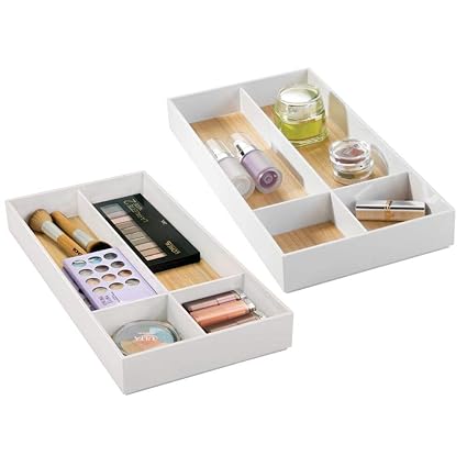 The bathroom drawer organizers include expandable drawer organizers that can fit in different drawer widths individual drawer. Bathroom drawer organizer is perfect to keep utensils cutlery small gadgets tools even jewelry and cosmetics nice and neat. Bathroom storage ideas include makeup organizers drawer organizers and bathroom storage options that help utilize every inch on a countertop or under a sink. Check out our selection of vanity drawer organizers that are great for cosmetics jewelry makeup accessories and other small toiletries that can easily clutter up drawer spaces.