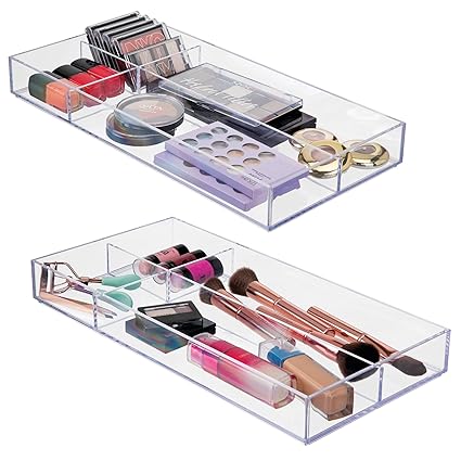 If youre looking to tidy up your bathroom drawer your best bet is probably the interdesign expandable cosmetics drawer organizer tray which can be adjusted to meet your needs and is made of a trendy clear acrylic material. Create an account and save 10 on your first order. Interdesign clarity 4 drawer makeup. If you like to do your makeup using the bathroom mirror and store your products in there be careful.