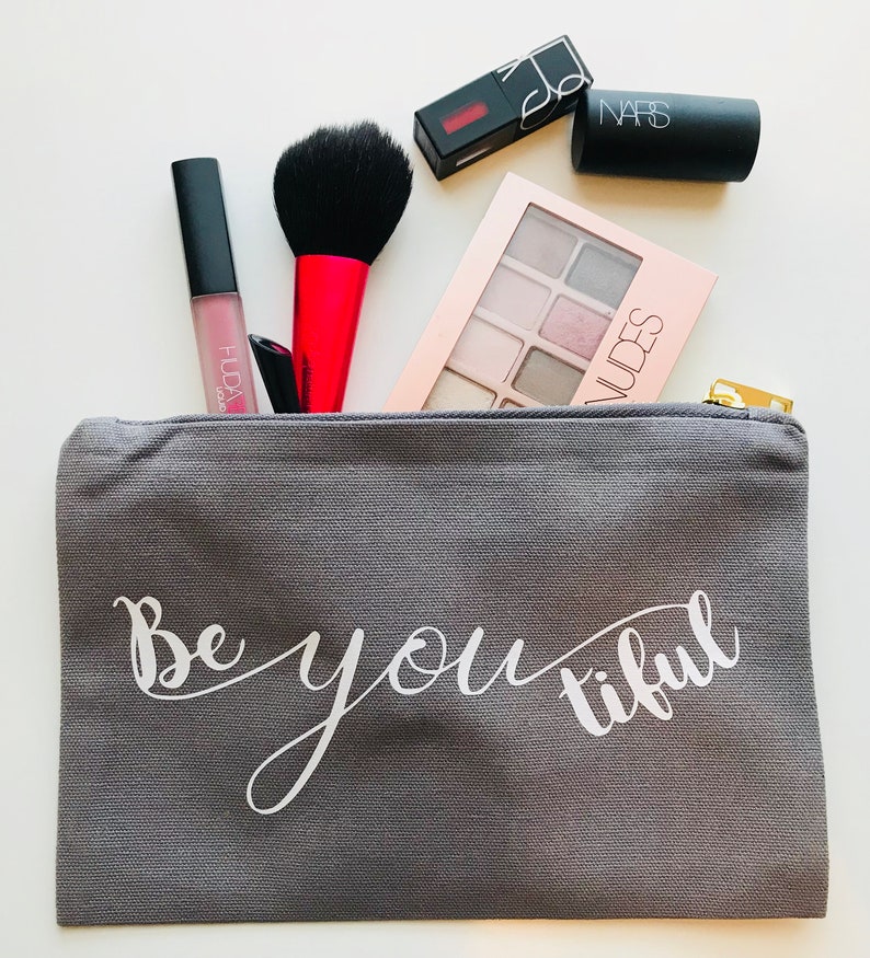 Im sure that it will bring joy. Its the perfect bag to use for your makeup or any everyday essentials. Be you tiful canvas make up bag toiletry bag blush cosmetic bag personalized cosmetic bag make up case lalapinkdesigns 5 out of 5 stars 290 1500 favorite. Buy be you tiful arrows grey 10 x 75 inch vegan leather cosmetic bag pouch.