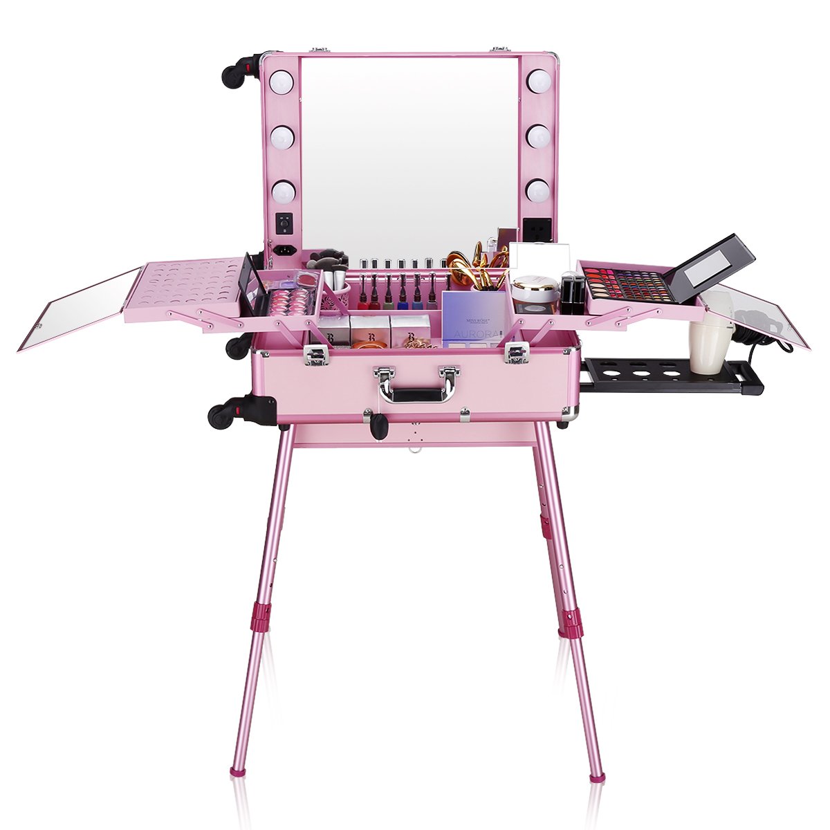 Rolling Makeup Station With Led Neutral Lights