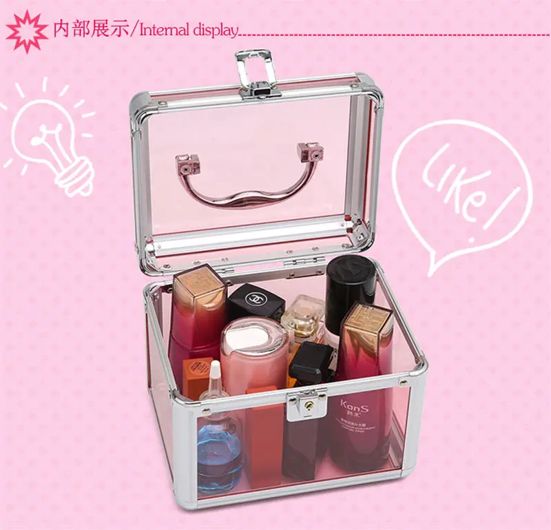 Lady Cosmetic Bag Women S Transparent White Pink Big Makeup Box With