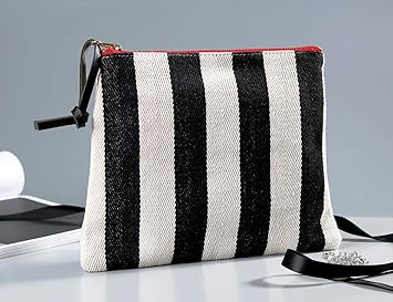 Amazon Com Black Beige Striped Canvas Makeup Cosmetic Bag 8 X 10