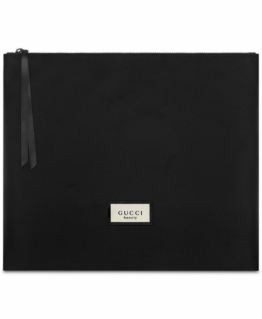 Gucci Beauty Signature Large Black Silky Pouch Makeup Cosmetic Bag