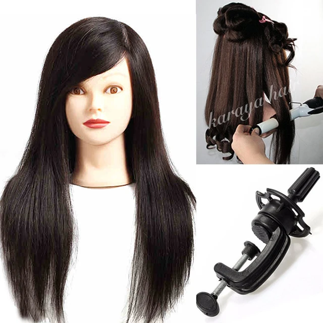 100 Real Hair Mannequin Head Clamp Black Wig Head Stand