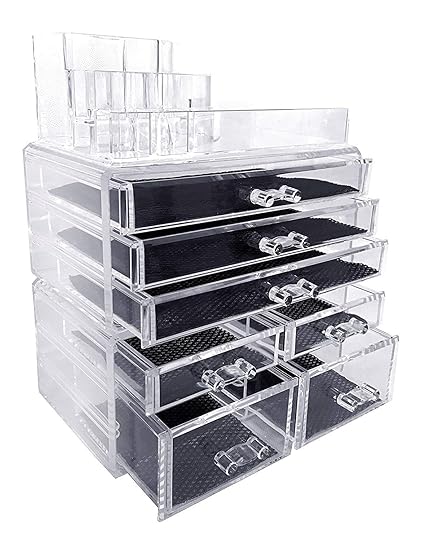 Clear Black Acrylic Makeup Organizer Drawers Cosmetic Case Jewelry