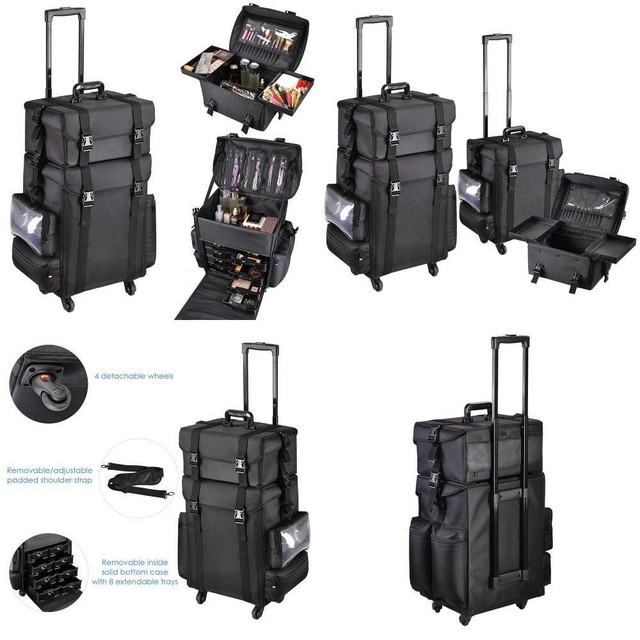 2in1 Black Soft Sided Rolling Makeup Case Oxford Fabric Cosmetic