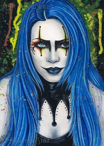 Harlequin Art Print Gothic Fantasy Creepy Colorful Jester Blue Hair