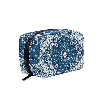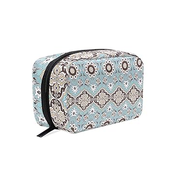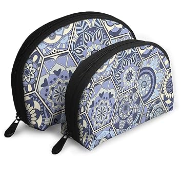 Amazon Com Makeup Bag Bohemian Hexagon Blue Flowers Portable Shell