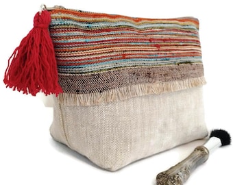 Boho Makeup Bagboho Zipper Pouchburlap Cosmetic Bagboho Etsy