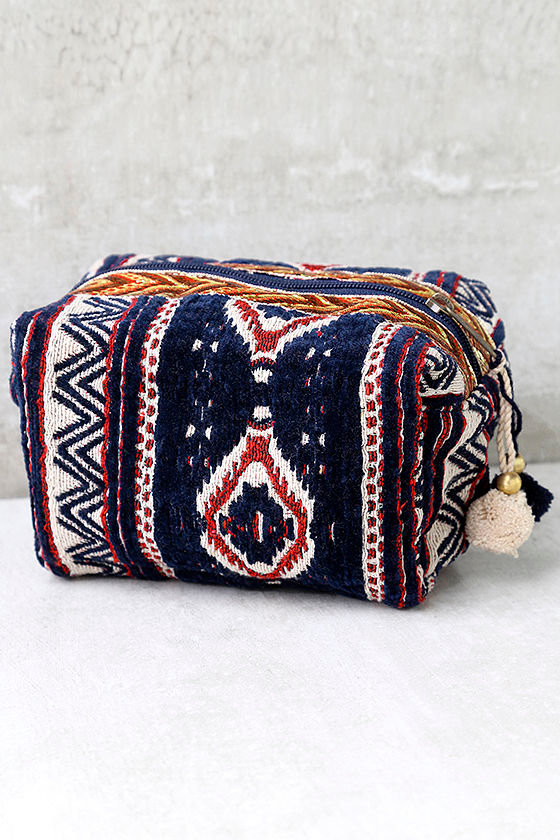 Lake Titicaca Blue Ikat Boho Cosmetic Makeup Bag The Wandering Coast
