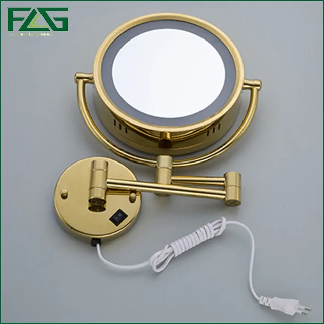 Online Shop Golden Brass Led Light Makeup Mirrors 8 5 Round Dual