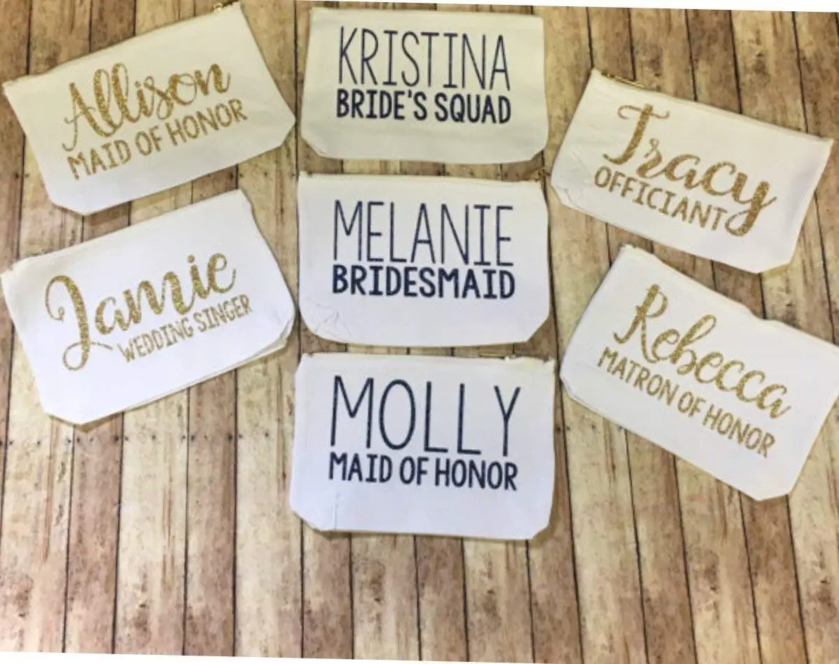 Us 13 4 10 Off Personalized Gold Wedding Bride Squad Bridesmaid Makeup Gift Make Up Comestic Bags Kits Zipper Pouches Clutches Birthday Gifts In