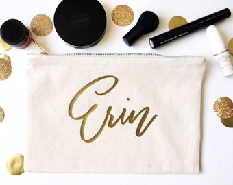 Bridesmaid Gift Makeup Bags With Gold Name For Bridesmaids Canvas