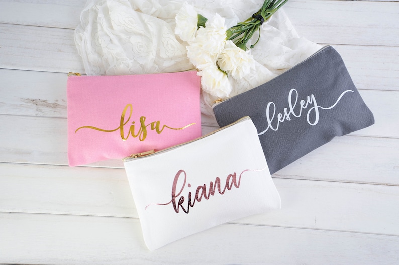 Our selection of popular bridesmaid totes can be personalized with a name or initials. Grab your makeup and your best friends because its time to get ready for the big day. Kate aspens gold foil bridesmaid canvas makeup bag is made from beige canvas and features a gold zipper to match the gold foil bridesmaid design. Etsy is the home to thousands of handmade vintage and one of a kind products and gifts related to your search.