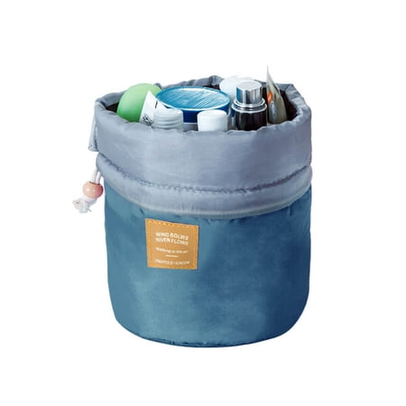 Women Makeup Drawstring Pouch Bucket Barrel Shaped Cosmetic Bag