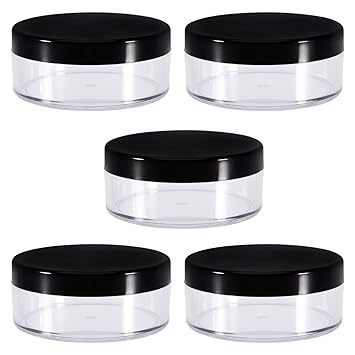 5 Cosmetic Jars Empty Makeup Containers Black Trim Acrylic Top 20