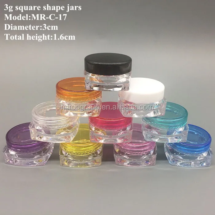 3g Square Base Plastic Sample Mini Bottle Jars Cosmetic Empty Makeup