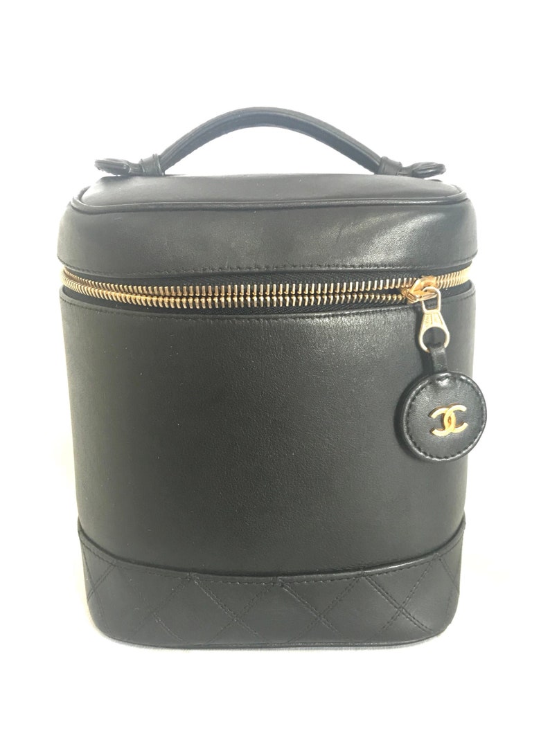 Vintage Chanel Black Calfskin Cosmetic And Toiletry Vanity Bag Etsy