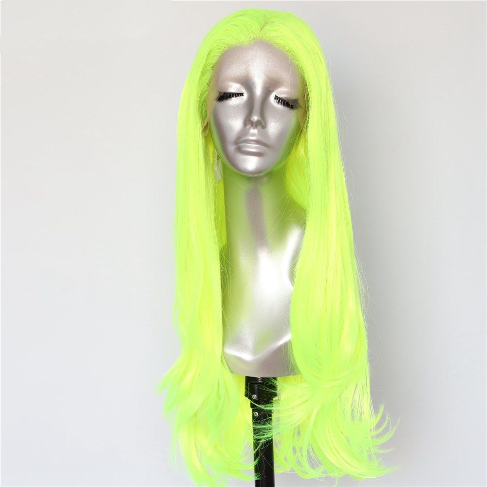 Luckystar Wigs Halloween Natural Wavy Neon Yellow Synthetic Lace