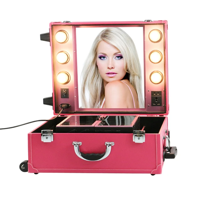 Makeup Artist Train Box With Led Lights Station Trolley Studio