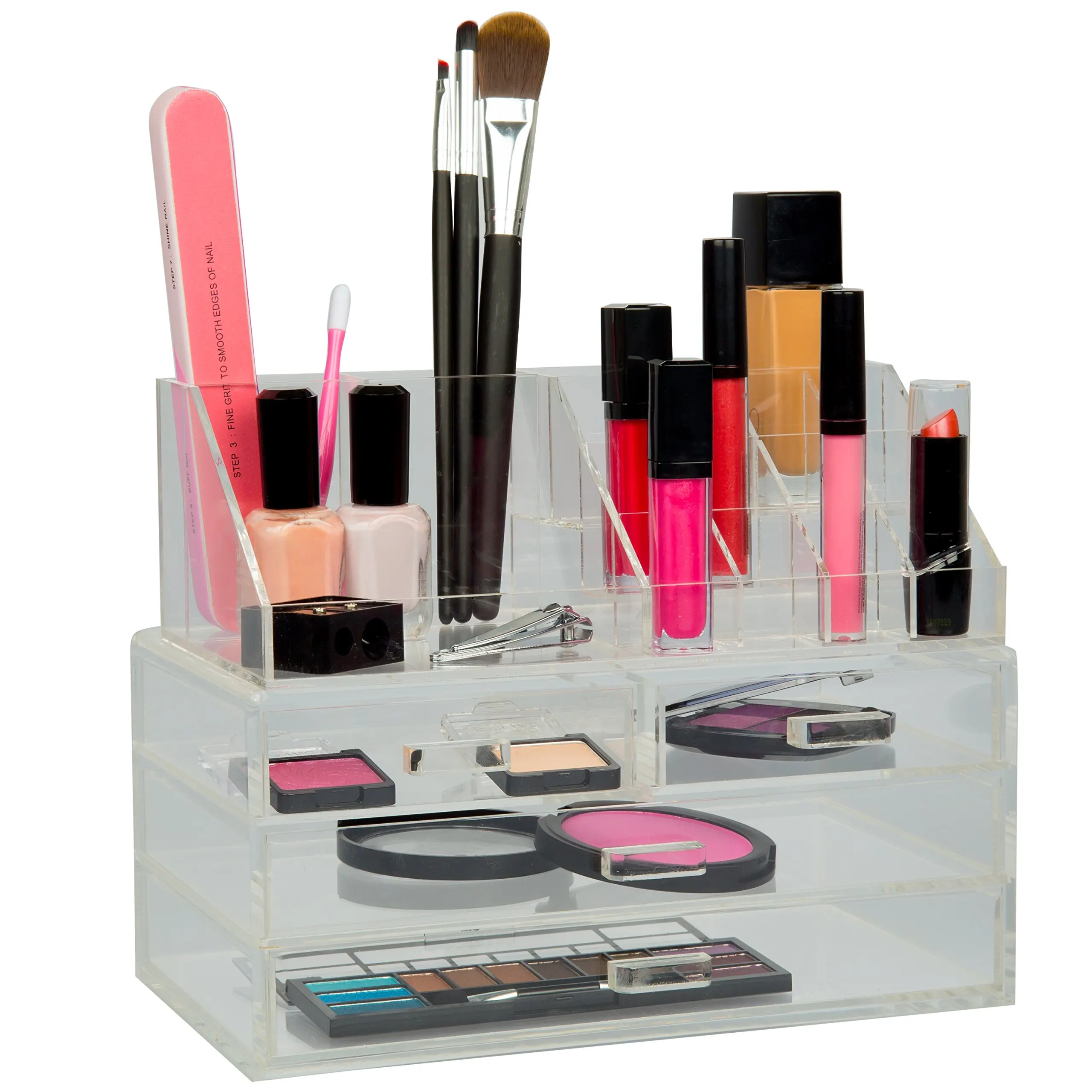 Amazon Com Cq Acrylic 4 Drawers And 16 Grid Makeup Organizer With