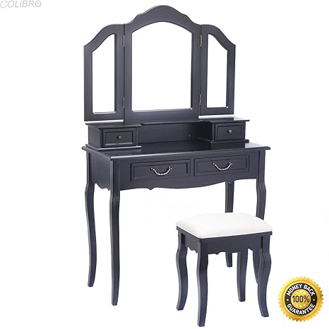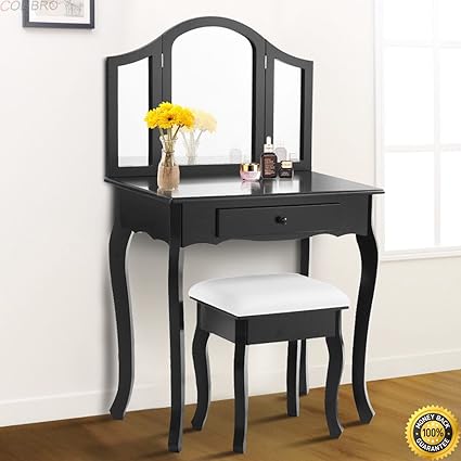 Amazon Com Colibrox Tri Folding Mirror Black Wood Vanity Set