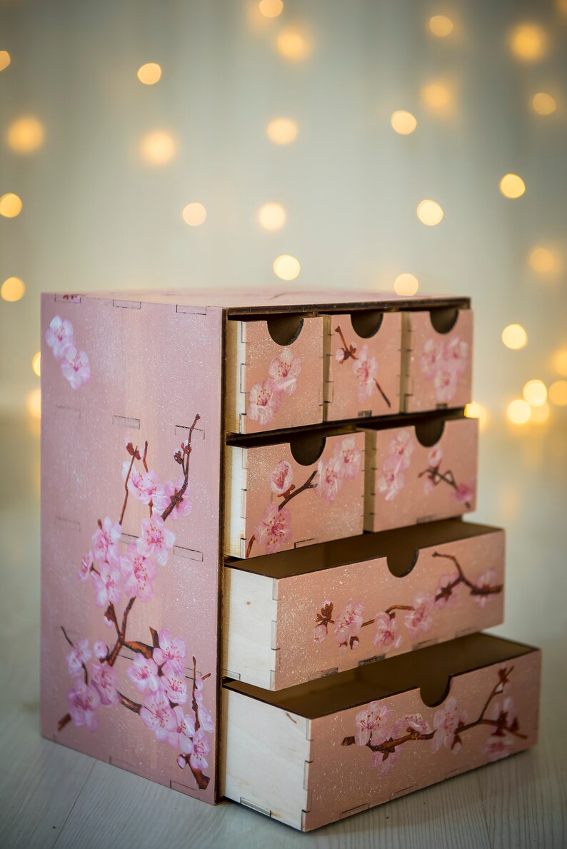 Chest Of Drawers Cherry Blossom Print Makeup Organizer Handmade