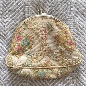 Vintage Plastic Lined Clamshell Floral Tapestry Snap Makeup Bag
