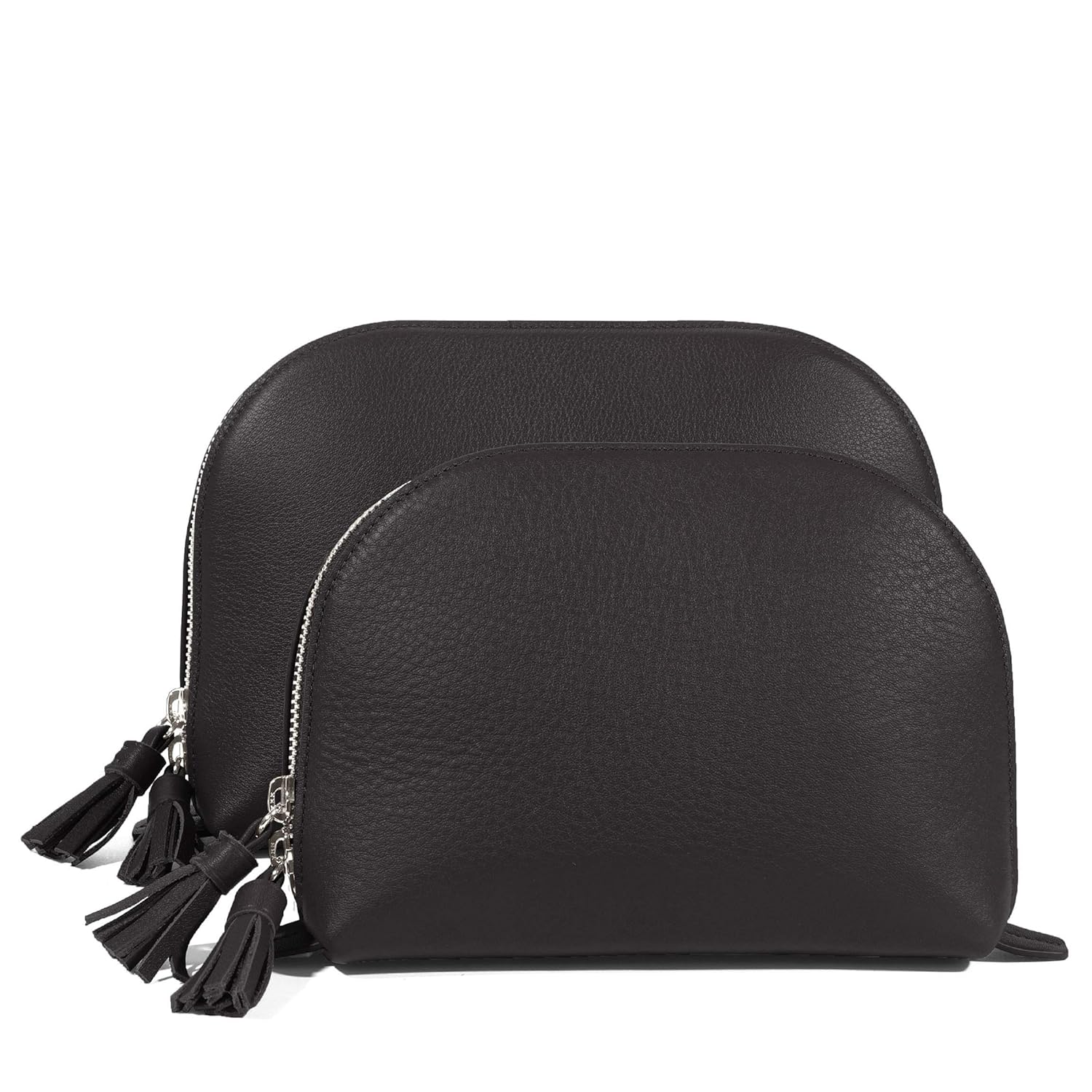 Clamshell Makeup Bag Set Full Grain Leather Black Onyx