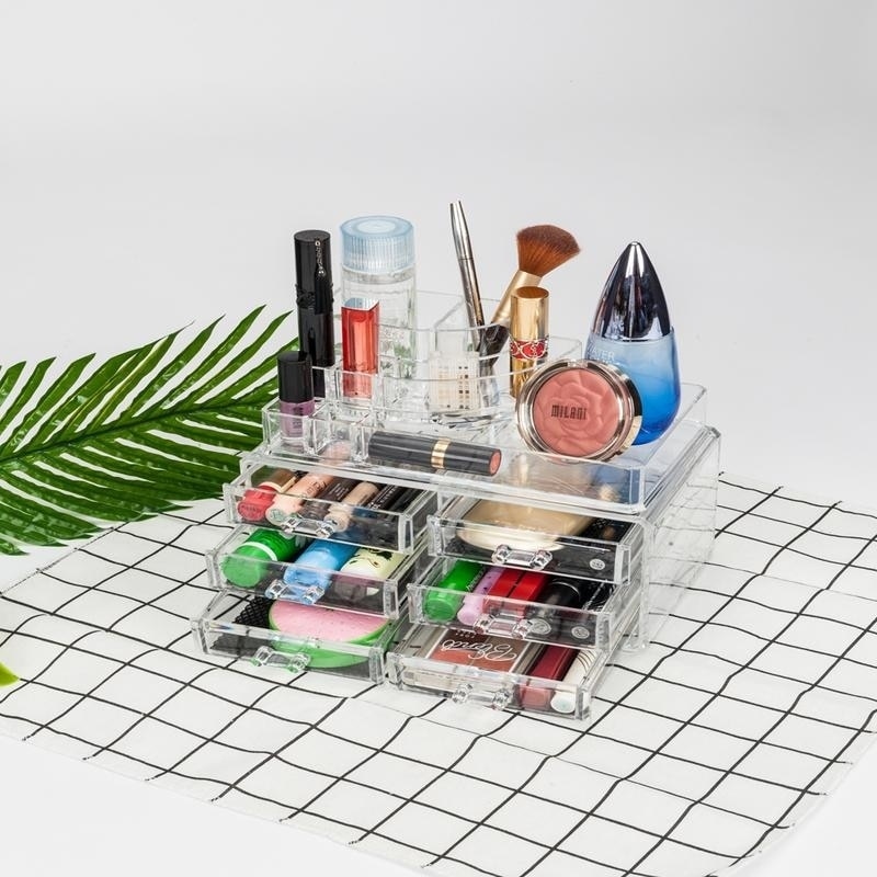 If you love palettes opt for an organizer with large drawers or if youre a lipstick. Showing 40 of 2152 results that match your query. Multi check 4 drawers integrated acrylic makeup case cosmetics organizer transparent cosmetic table organizer makeup holder case box jewelry storage. Put on a happy face.