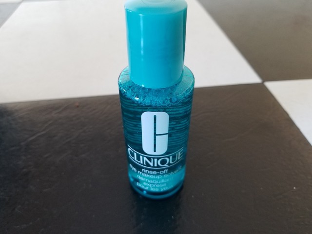 Clinique rinse off eye makeup. Cleans eye area easily without disturbing other makeup. Rinse off eye makeup solvent. Cleans up eyes easily without disturbing other makeup. Rinse off eye makeup solvent.