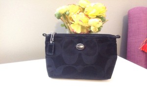 Details About Coach Signature Nylon Black Travel Cosmetic Pouch Makeup Bag