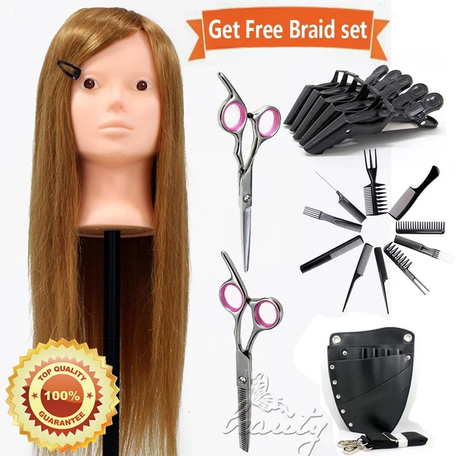 22 90 Real Human Hair Training Makeup Head Practice Hairdressing