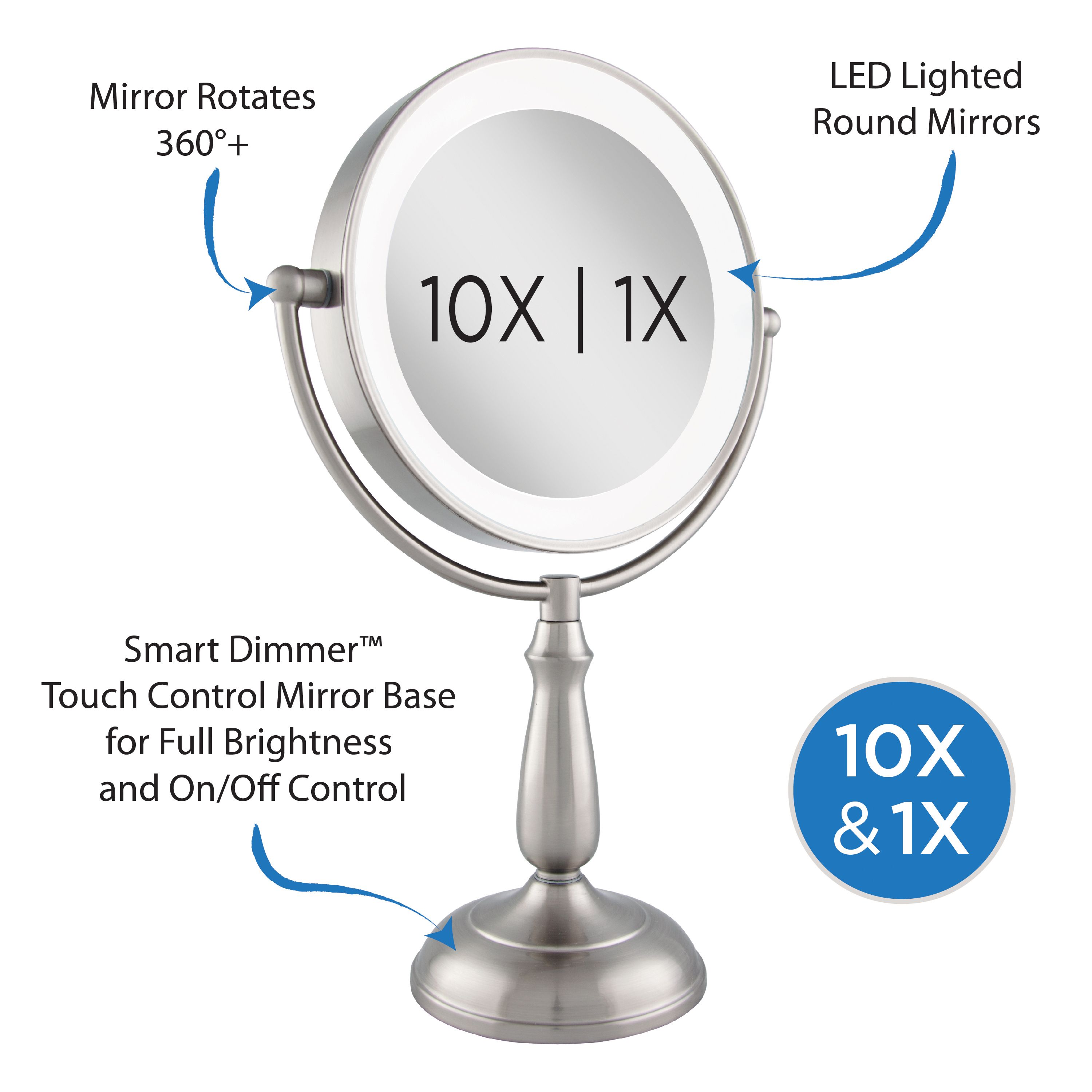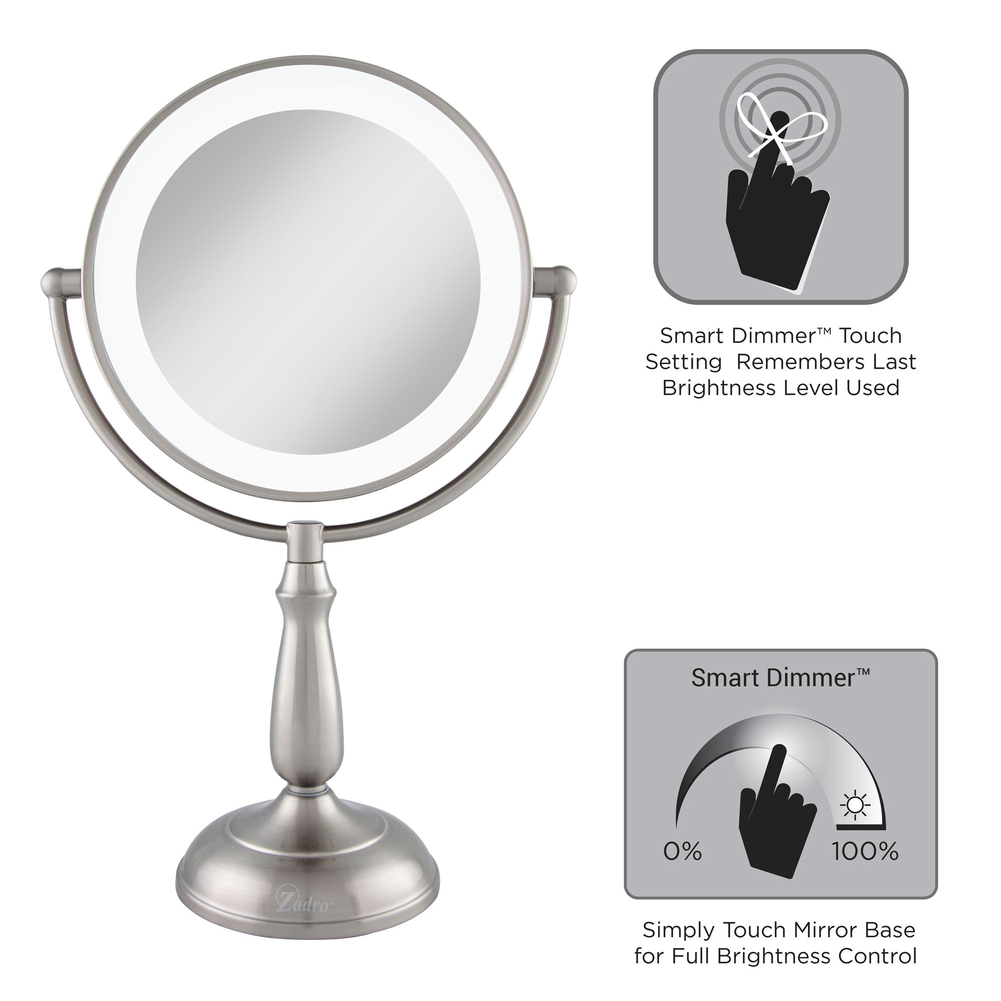 Zadro 9 Dual Sided Led Lighted Touch Vanity Mirror With 10x 1x
