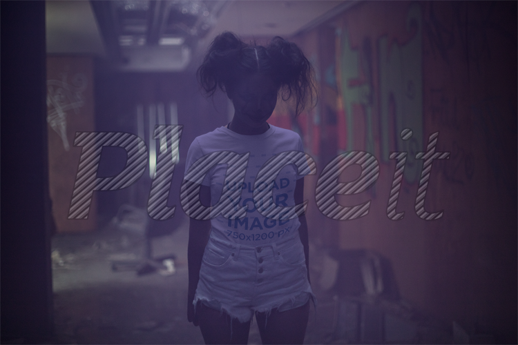 Placeit T Shirt Mockup Of A Woman With Pigtails And Halloween
