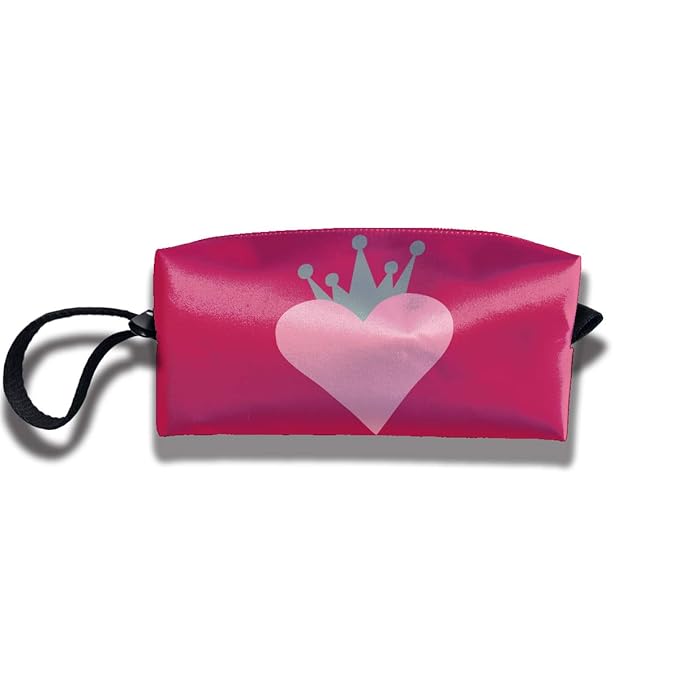 Amazon Com Pink Heart With Gray Crown Travel Makeup Bag Cosmetic