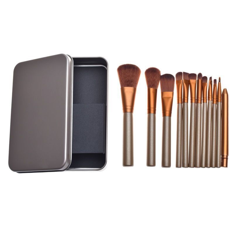 Best Selling Wood Handle Synthetic Hair Makeup Brush Set Maquillaje 12 Piece Makeup Brushes Custom Logo Makeup Brush With Metal Box