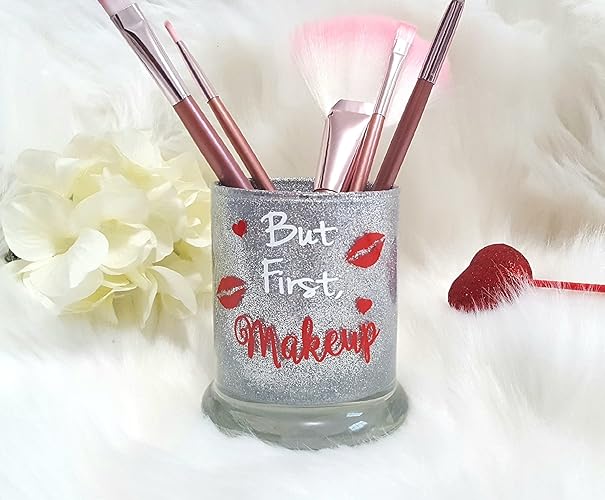 Amazon Com But First Makeup Glass Makeup Brush Holder A Glitter