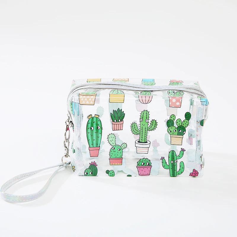 Women Travel Clear Toiletry Cosmetic Bag Pvc Cactus Flamingo Make Up